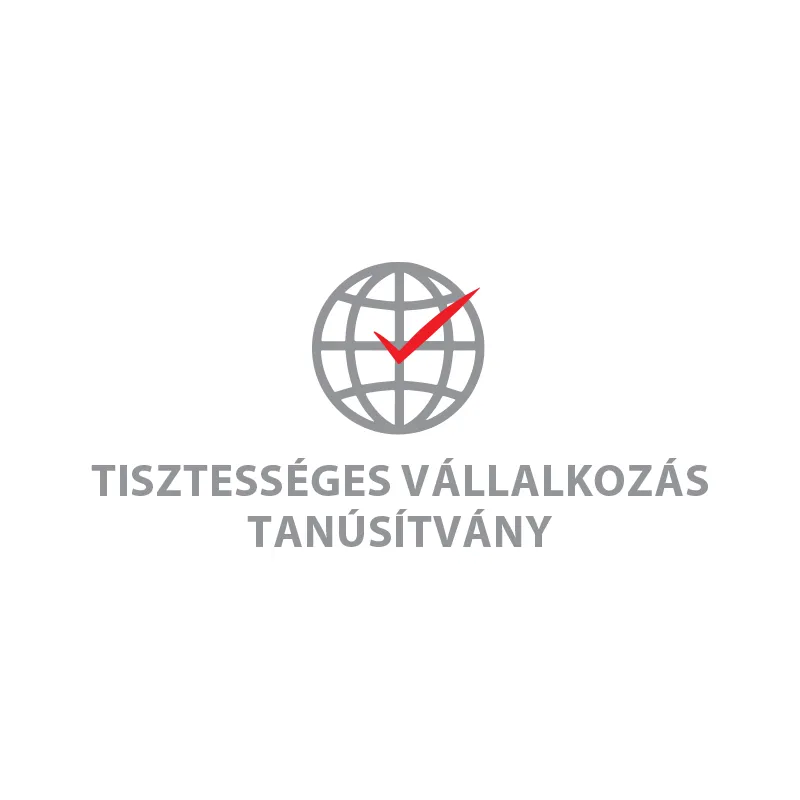 Büszkék vagyunk rá, hogy 2025. évben elnyertük a "Tisztességes Vállalkozás" tanúsítványt is, amely igazolja etikus üzleti magatartásunkat és a partnereinkkel szembeni korrektségünket.